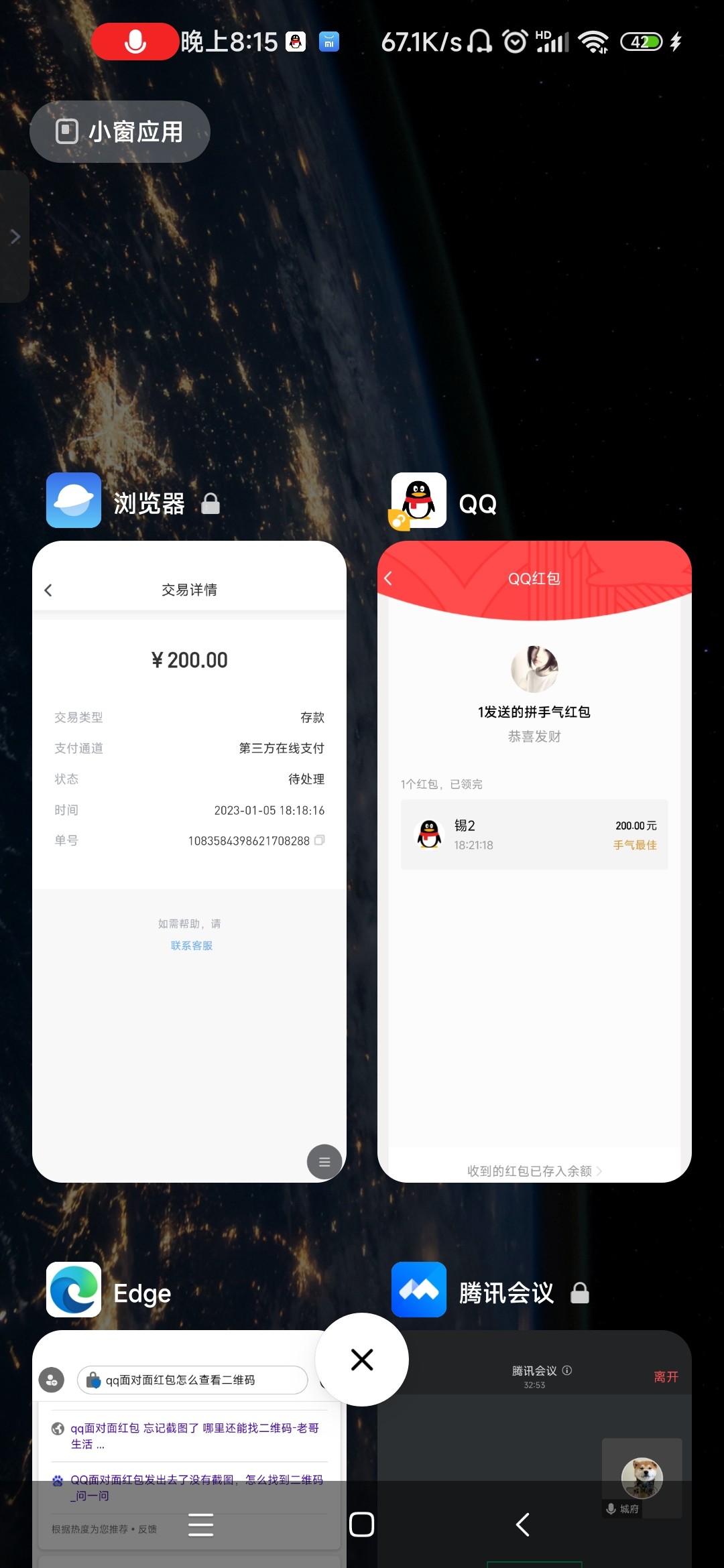 他这个开腾讯会议了,可以看到屏幕,如果漏二维码那应该就是他会议里的人偷的