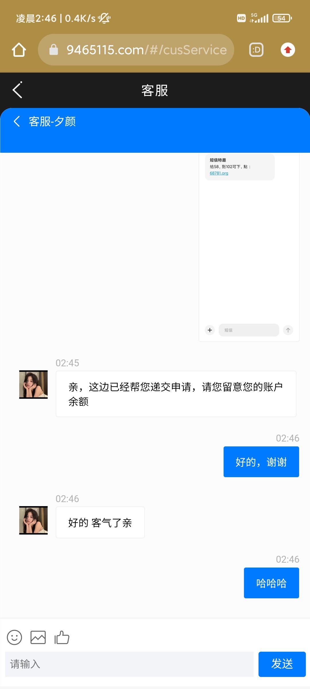 有短信,客服一直进不去