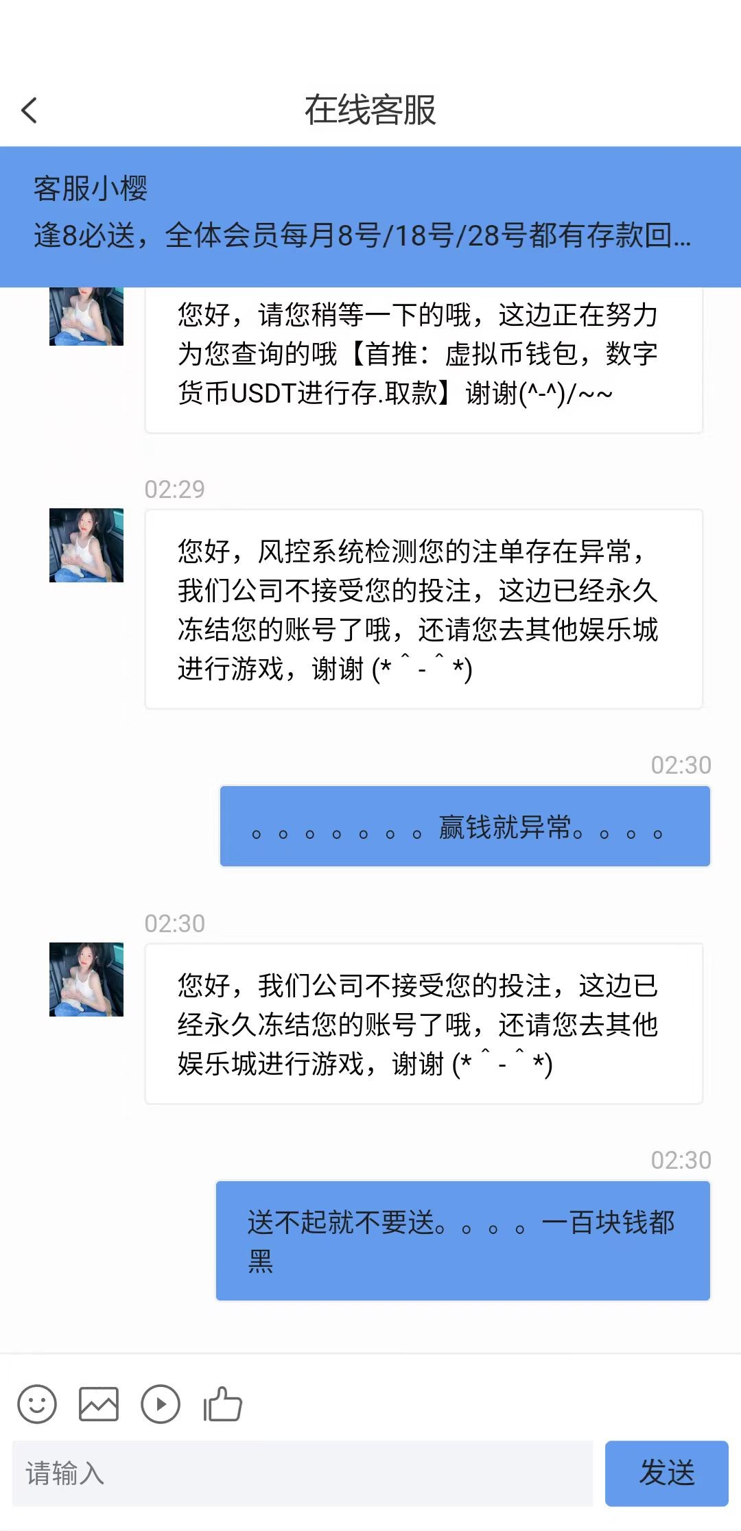 bin7923 金沙提现100直接冻结账号 让我24小时之后再看 百分之95是没希望了